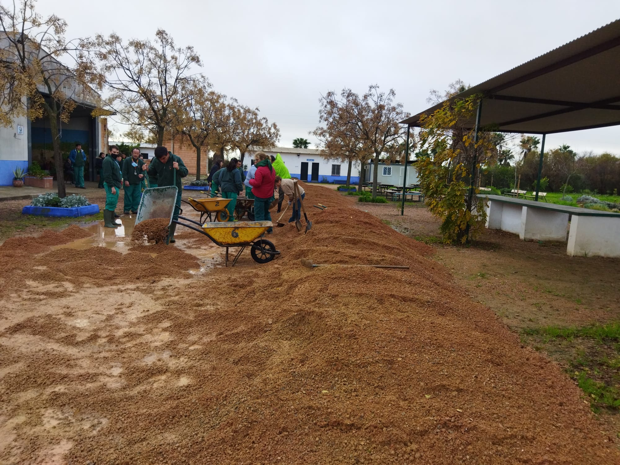 Da igual que haga frío o llueva, nuestros chicos tienen una buena receta para entrar en calor a base de rastrillo, pala y carro.