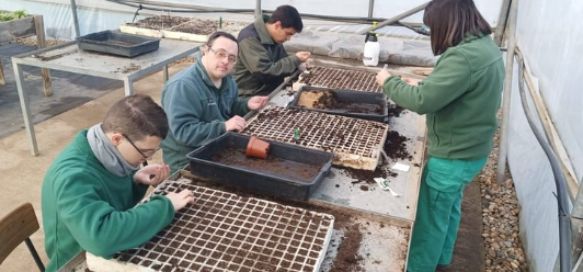 El trabajo en el vivero permite un aprendizaje progresivo y la satisfacción de ver los resultados del propio esfuerzo. Esta actividad contribuye al desarrollo de la autonomía, la responsabilidad y las competencias clave para el entorno prelaboral.